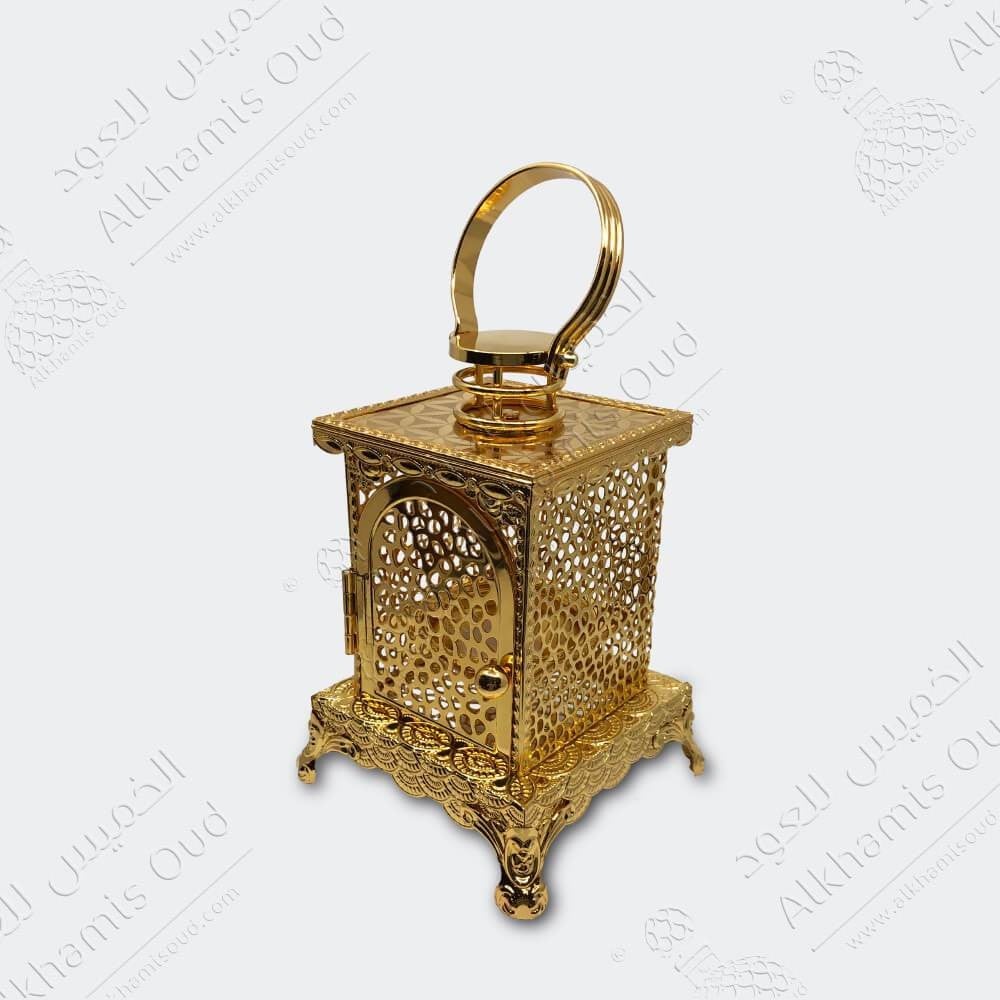 مبخرة ذهبي على شكل فانوس تم تصميمها بتصميم فاخر وفريد مستوحى من الفانوس حيث أنها تضفي طابع الفخامة فخمة و مطلية يدوياً بتفاصيل معدنية تمنح المبخرة مظهراً رائعاً, حيث المباخر تأتي بشكل رائع لتناسب كافة الديكورات المنزلية، و تعد اختيار مناسب لاستخدامك الشخصي او تقديمها كهدية في المناسبات الخاصة.
